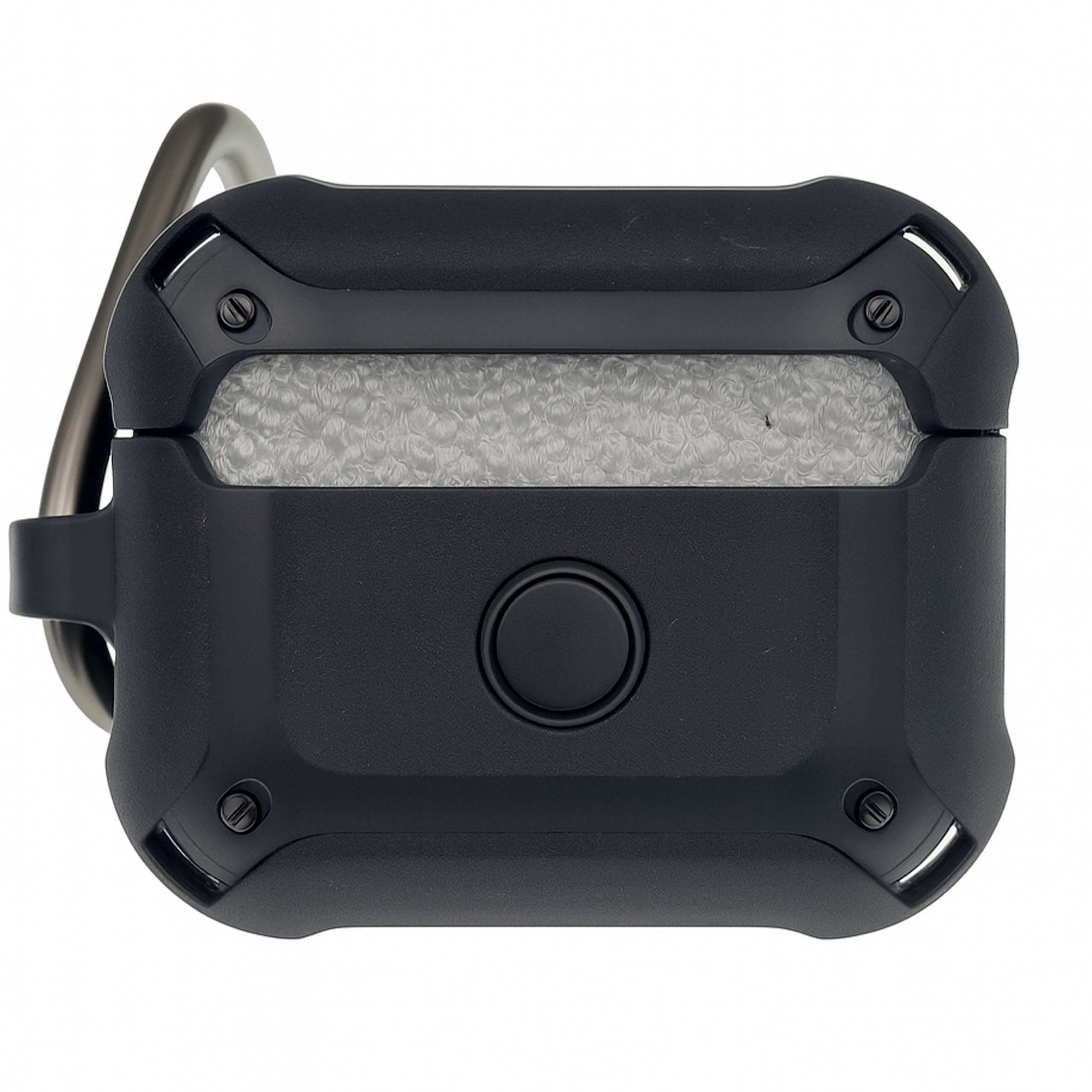 Czarne pancerne etui Nitro do Apple AirPods / AirPods 2 z karabińczykiem.