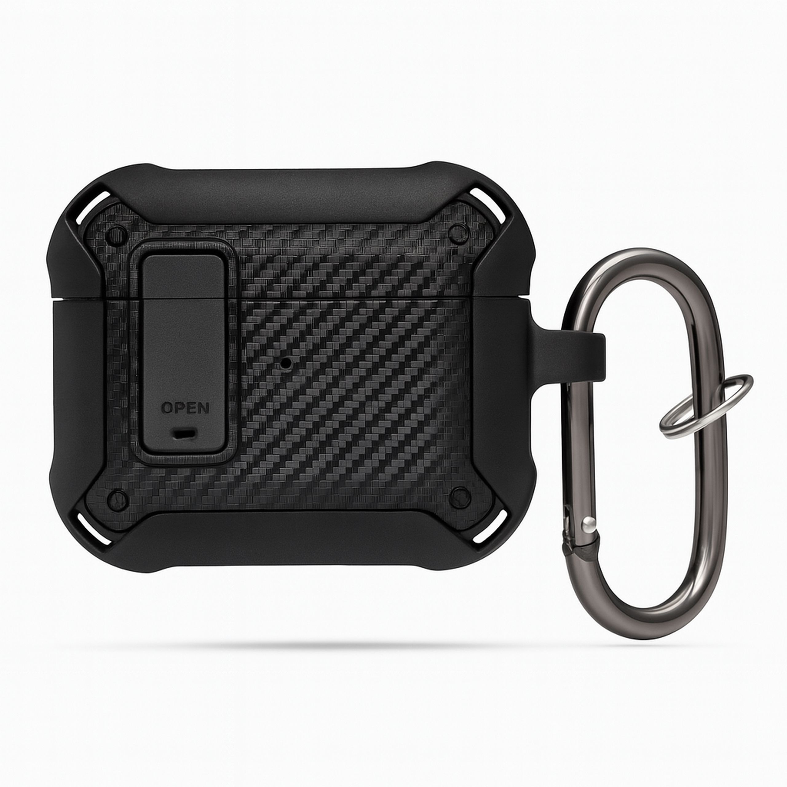 Ochrona to nie wszystko – liczy się też wygoda. Do etui dołączony jest wytrzymały, metalowy karabińczyk, dzięki któremu możesz bezpiecznie przypiąć swoje słuchawki do plecaka, kluczy czy szlufki od spodni.
